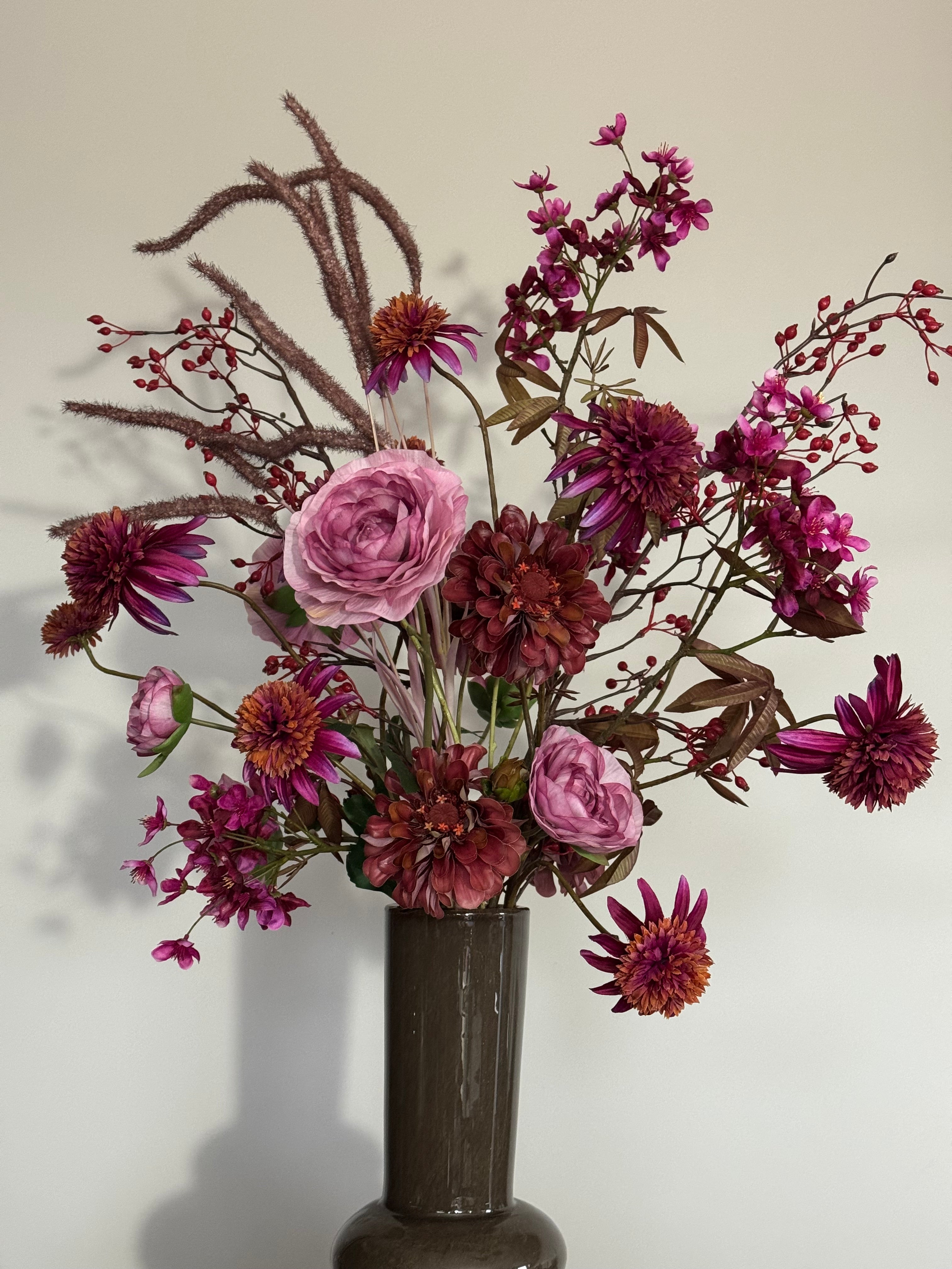 Het is toch zonde als je prachtige bloemen na een week kan weggooien? Zijden bloemen zijn dé uitkomst. Maar dan moeten ze wel net echt lijken. Daarom ga ik het land door om de bloemen te selecteren op kleur en kwaliteit. Naast de boeketten op de website maak ik ook boeketten op maat. Bijvoorbeeld voor op de balie in jouw bedrijf of voor thuis perfect passend bij je interieur.